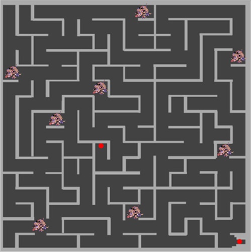 Hmm… dari nama Eventnya pasti kalian sudah bisa menebak kan? Yup! Labirin… kalian tau kan apa sih Labirin itu? Labirin adalah semacam permainan dimana kalian harus menemukan jalan keluar yang tersedia. Nah… tugas kalian adalah mencari jalan keluar dari Labirin yang tersedia ( silahkan dibuatkan garis penghubung antara titik merah satu dengan titik merah lainnya yah ), Eits.. tidah hanya itu saja, kalian juga harus menyebutkan nama dari Map di Labirin tersebut dan Nama Monster yang ada di dalam Labirin tersebut!